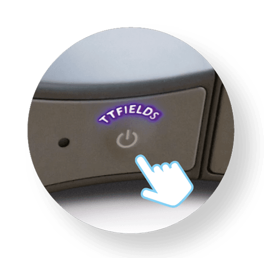 4. Appuyez sur le bouton TTFields. Le témoin bleu TTFields s’allume. Cela signifie que le traitement est en route.